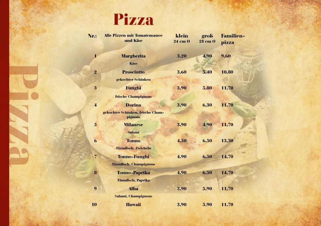 Speisekarte Gestaltung